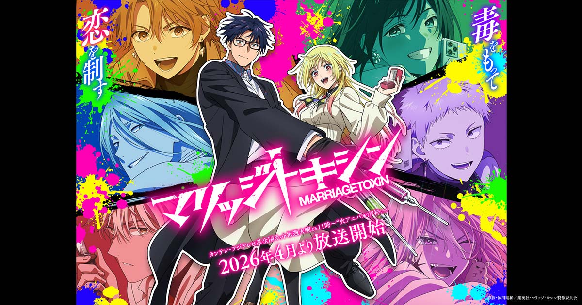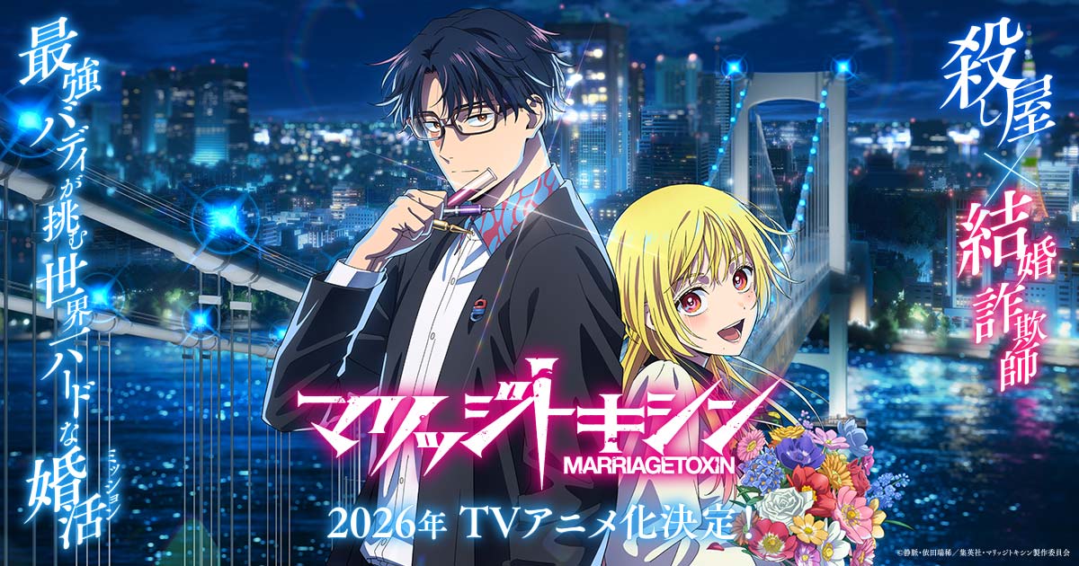 少年ジャンプ+で連載中の漫画「マリッジトキシン」(静脈、依田瑞稀)のアニメ化が決定しました。アニメ1期が2026年から放送されます。