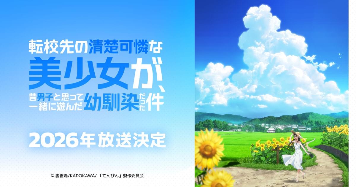 現在、「転校先の清楚可憐な美少女が、昔男子と思って一緒に遊んだ幼馴染だった件」アニメ1期の制作が決定し、2026年からの放送予定です。