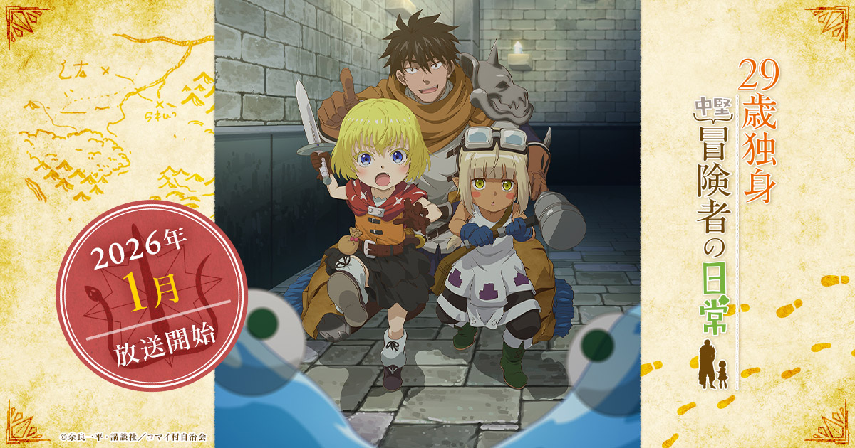 別冊少年マガジンで連載中の漫画「29歳独身中堅冒険者の日常」(奈良一平)のアニメ化が決定しました。アニメ1期が制作される予定です。