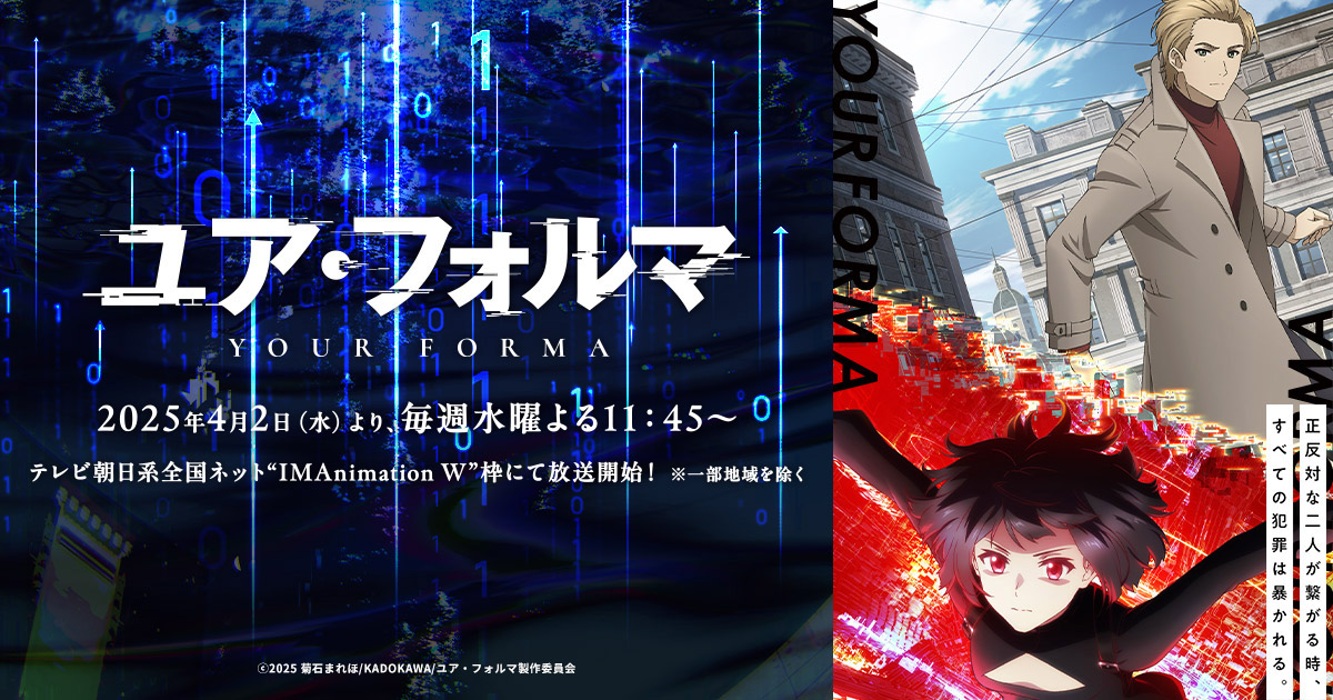 小説が原作の「ユア・フォルマ」(菊石まれほ)ですが、アニメ第1期が2025年4月からテレビ朝日アニメ枠「IMAnimation W」で放送されています。